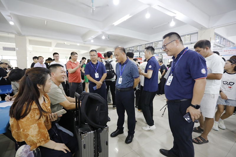 上午10:50左右,学校党委书记、校长雷武逵率学校领导班子及相关科室负责人来到迎新现场,亲切慰问工作人员,与新生及家长热情交流,详细了解报到情况。