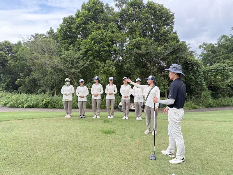 雷武逵对同学们积极认真、刻苦训练的学习态度给予充分肯定。他强调,旅游服务与管理(高尔夫球运动与服务专业方向)是学校深化产教融合、推进应用型人才培养的重要方向,校企合作实训是提升学生实践能力的关键环节。他勉励同学们珍惜实训机会,夯实专业基础,不断提升职业素养和团队协作能力,为未来职业发展做好充分准备。