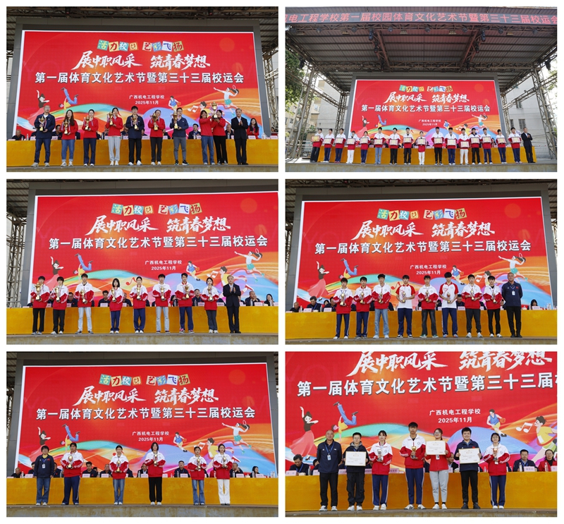 11月28日下午,广西机电工程学校第一届校园体育文化艺术节暨第三十三届校运会在安吉校区运动场圆满落幕。全体师生齐聚现场,共同见证这场融合体育竞技与文化艺术的青春盛会收官。