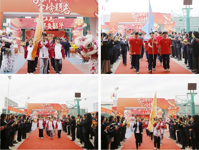 在学校党委书记雷武逵宣布仪式启动后,烟花腾空、雄狮开道、锣鼓震天。身着整齐制服的学子们喊着嘹亮口号,昂首阔步穿越“成人门”与“状元门”。道路两侧,校领导与任课教师列队鼓掌、挥手呐喊,目光中满是期许与骄傲。