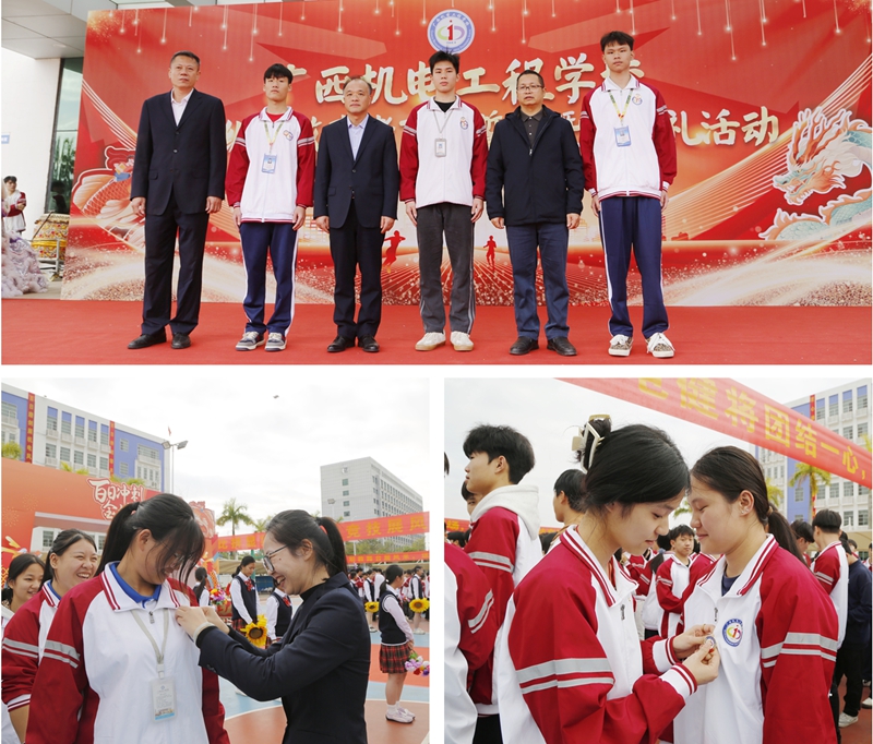 12月15日下午,广西机电工程学校产教融合示范园内旌鼓齐鸣、誓言铿锵。2023级全体师生、家长代表与校领导齐聚一堂,共同见证一场别具深意的青春仪式——职教高考百日誓师暨十八岁成人礼。这场将“成长之责”与“冲刺之志”深度融合的活动,不仅为学子们加冕成年的荣光,更为他们吹响了决战职教高考的冲锋号角。