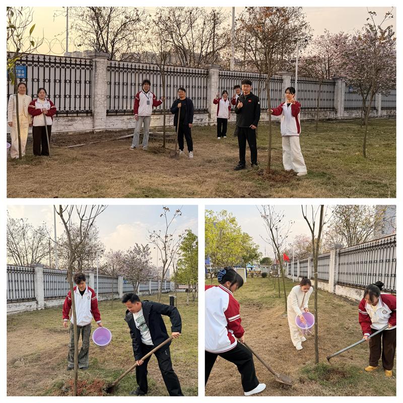 春风吐绿,草木初萌。3月12日,在第48个植树节之际,为深入践行生态文明理念,强化劳动教育实效,美化校园环境,学校学生科、团委组织师生开展了以“播撒绿色希望,共建美丽校园”为主题的植树节爱绿护绿活动。