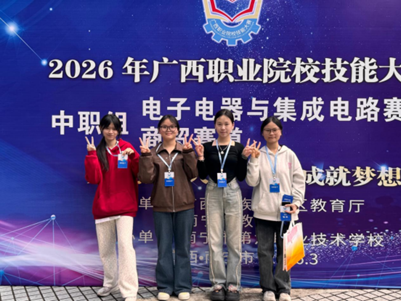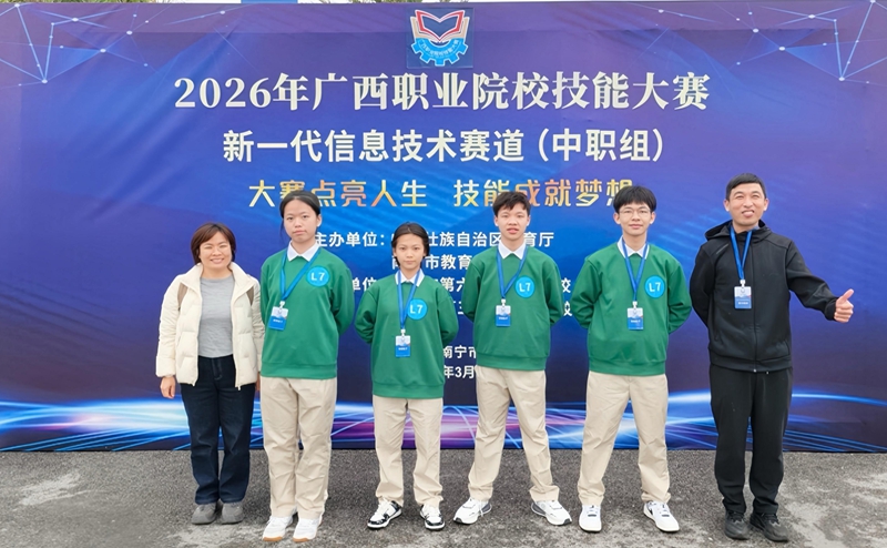 近日,广西教育厅公布了2026年广西职业院校技能大赛获奖名单,中职组共有1215个奖项,其中金奖219个,银奖389个,铜奖607个。学校以金奖13个、银奖10个、铜奖7个的好成绩,与南宁市第四职业技术学校并列2026年广西职业院校技能大赛中职组金奖第一!