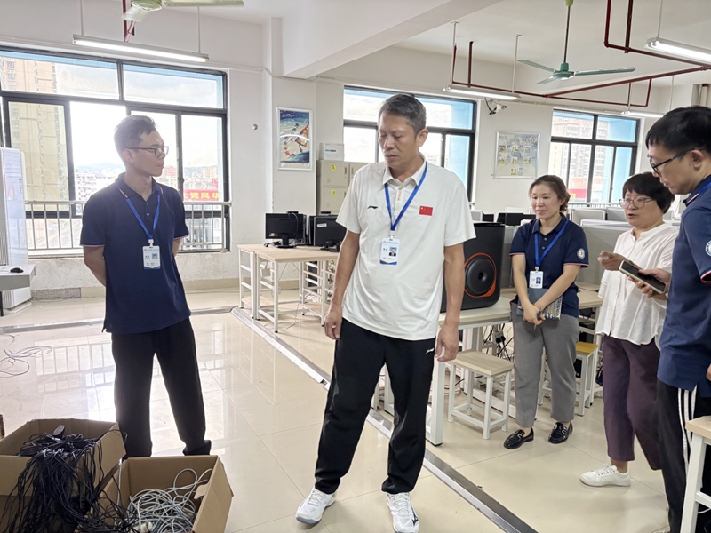 为全面排查实训室安全隐患,扎实做好新学期开学准备工作。9月2日下午,学校副校长梁志带领教务科、各专业部负责人及相关实训室安全员,开展了新学期实训室安全专项检查工作。