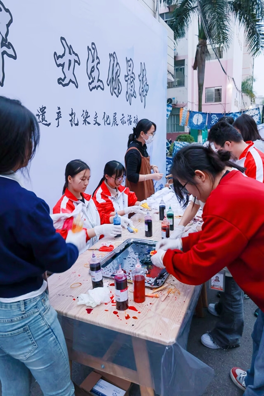 我校以《青春主旋律,女生你最棒——国家级非物质文化遗产扎染文化展示活动》为主题,邀请感兴趣的女生亲自参与扎染制作过程,感受古人扎染心历路程。本次体验国家非遗扎染手工艺活动不仅开拓了同学们的视野,陶冶了情操,同时弘扬传统的民族文化,也推动了民间传统文化在校园的继承和创新。